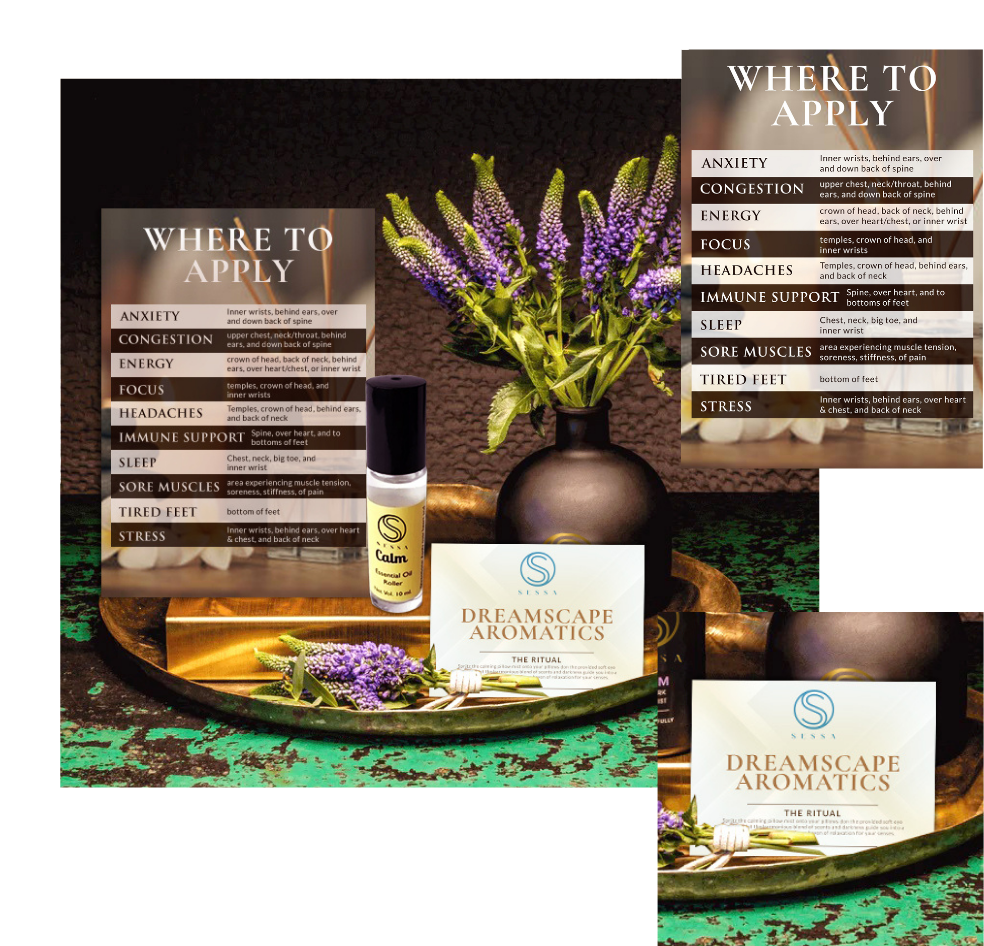 Roll the provided lavender oil on specific points of your body, following the suggested guide, and let the aromatic oils envelop you, creating a personalized and blissful experience that harmonizes your senses.