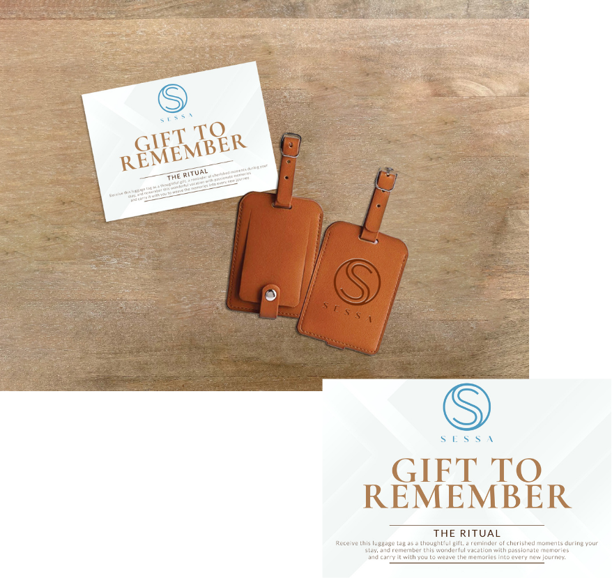 Receive this luggage tag as a thoughtful gift, a reminder of cherished moments during your stay, and remember this wonderful vacation with passionate memories and carry it with you to weave the memories into every new journey.