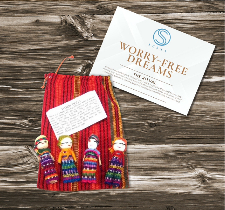 Embrace the calming tradition of worry dolls by placing them beside your bed, sharing any concerns you may have with these tiny guardians, and allowing their comforting presence to bring peace of mind before drifting into a restful sleep.