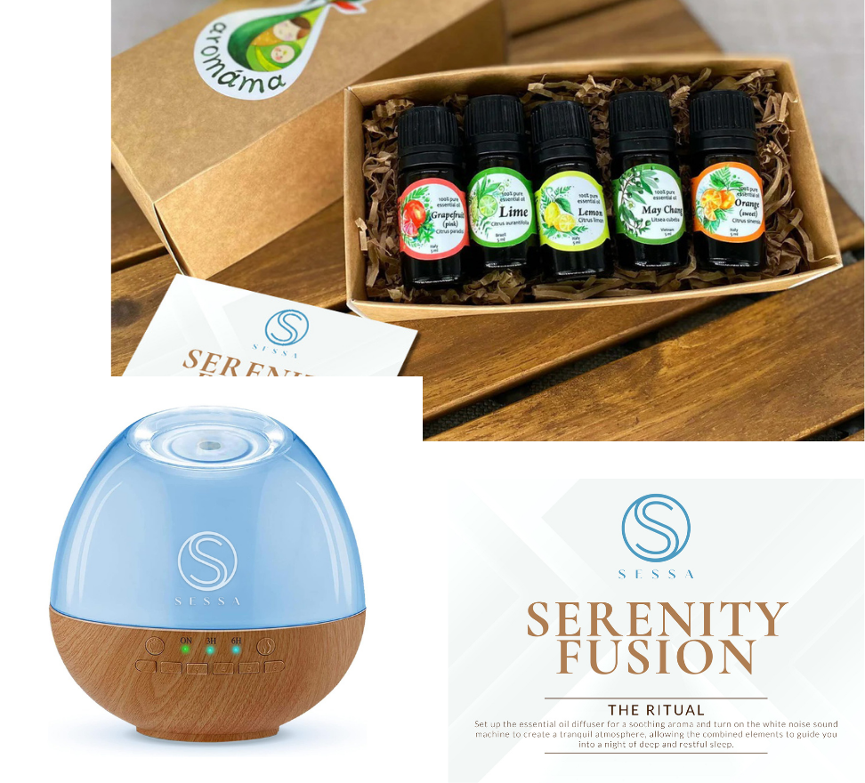 Set up the essential oil diffuser for a soothing aroma and turn on the white noise sound machine to create a tranquil atmosphere, allowing the combined elements to guide you into a night of deep and restful sleep.