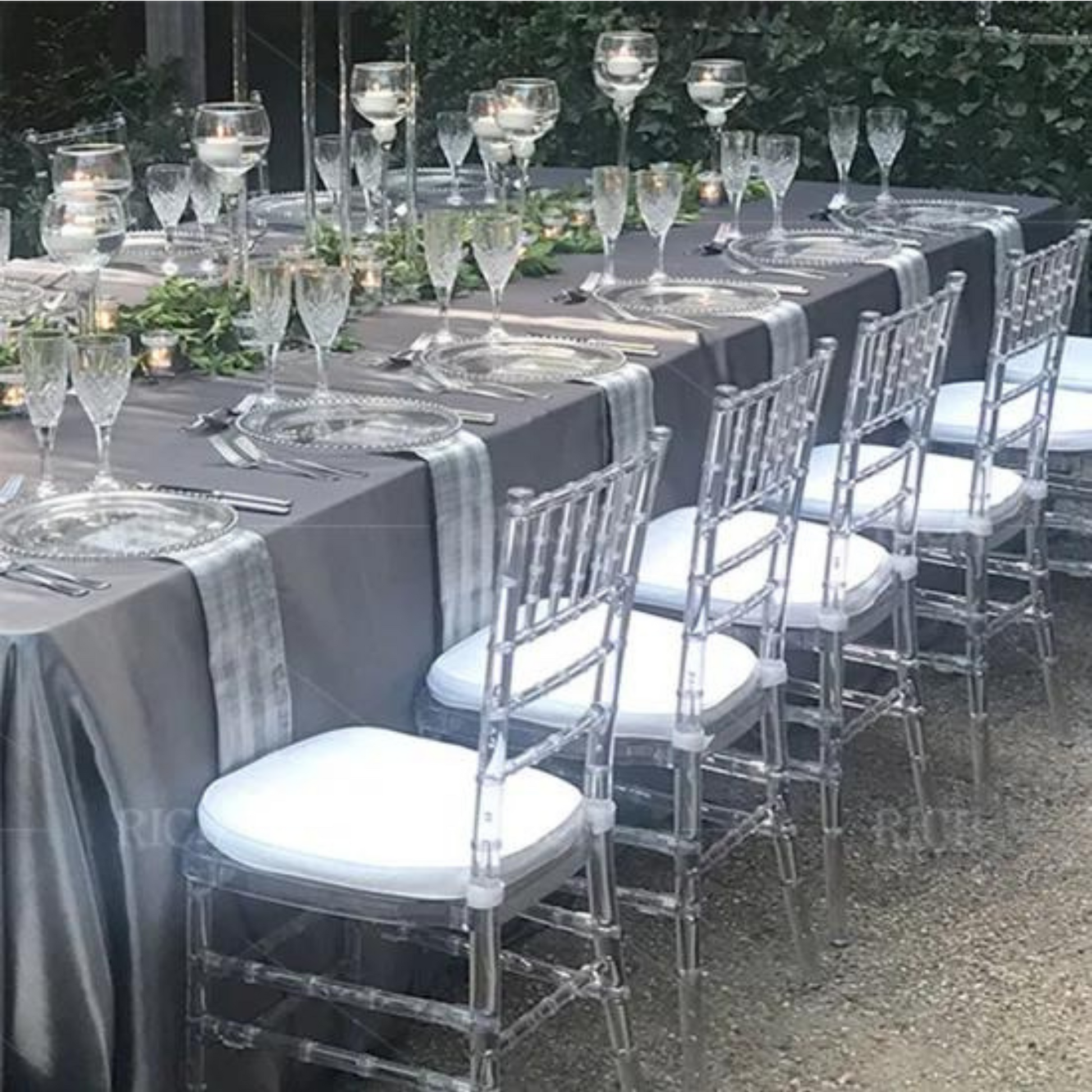 Enhance your space with this stylish acrylic chair featuring a comfortable cushion for added support. Designed with a sleek and transparent frame, this chair offers a modern touch while ensuring durability and stability. The soft cushion provides extra comfort, making it perfect for dining areas, event venues, and hospitality settings. Its lightweight yet sturdy construction allows for easy placement and mobility, making it an excellent choice for both commercial and residential use.