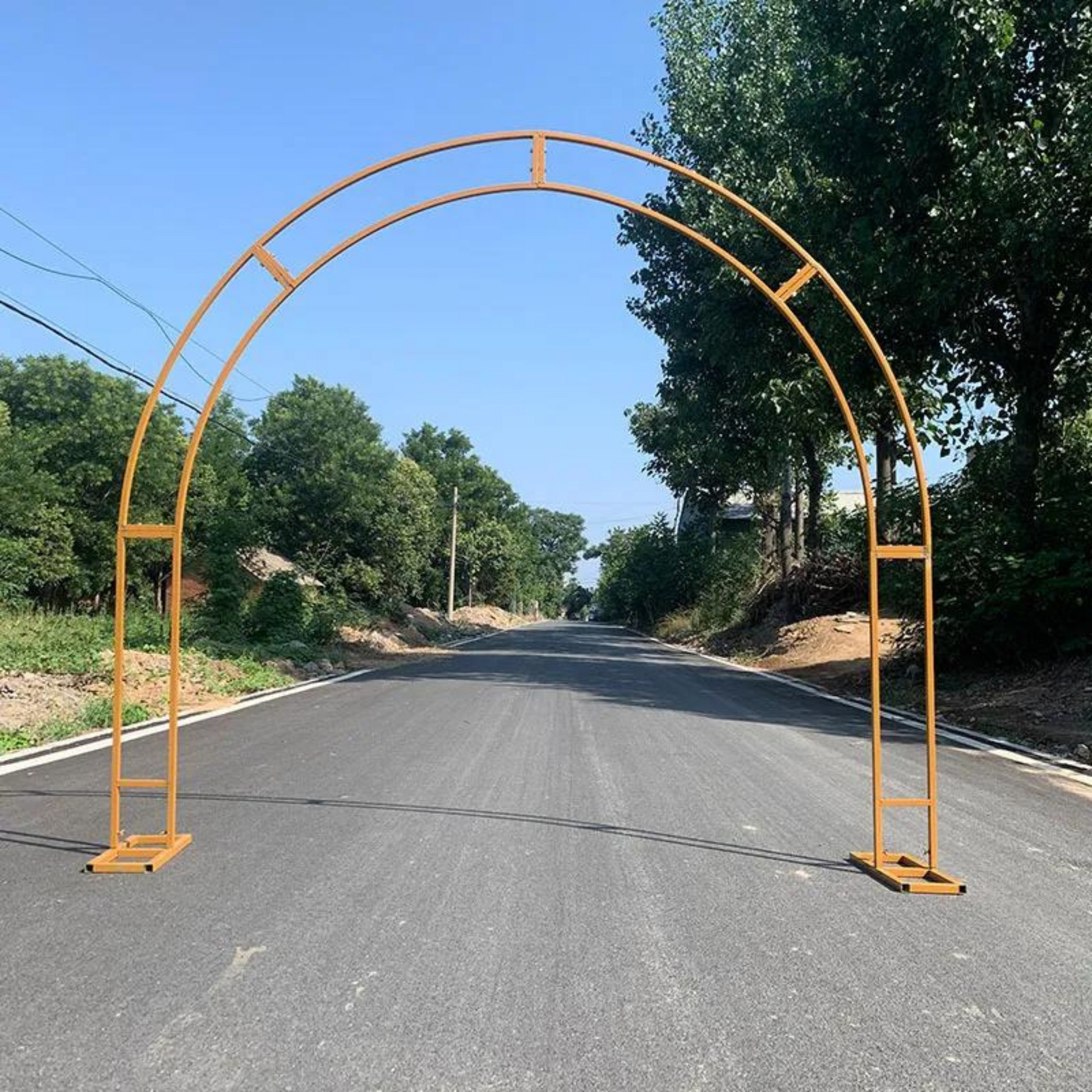 Elevate your event decor with this elegant arch iron background flower stand, perfect for weddings, garden parties, or photo backdrops. Crafted from durable metal, the double-pole design provides sturdy support for floral arrangements and decorative elements. The graceful arc shape adds a romantic touch to any outdoor setting. With a height of 2.2 meters and width of 1.8 meters, it offers ample space for creative styling. Customization options are available to fit your specific theme or branding needs.