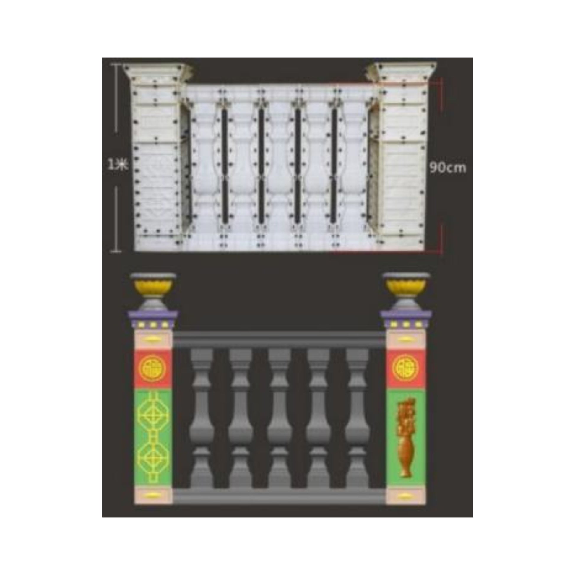 Use: Ideal for on-site casting of concrete balusters and side columns in architectural and landscape railing designs.