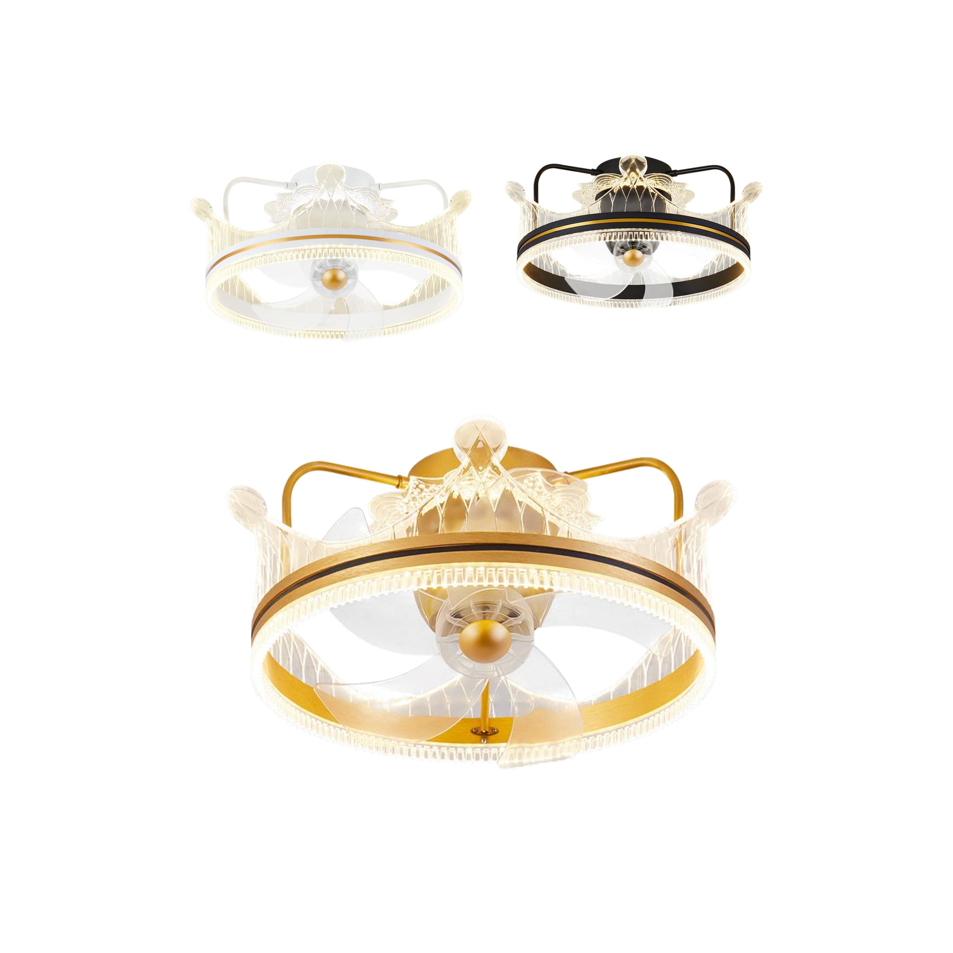 The Model 1310 ceiling fan features a 550x260mm design, perfect for medium to large rooms. It is equipped with a 65W integrated LED module that provides bright, energy-efficient lighting in dual color temperatures of 3000K (warm white) and 6000K (cool white). Available in black, white, and gold finishes, this fan is crafted with durable ABS blades for a modern aesthetic and long-lasting performance.