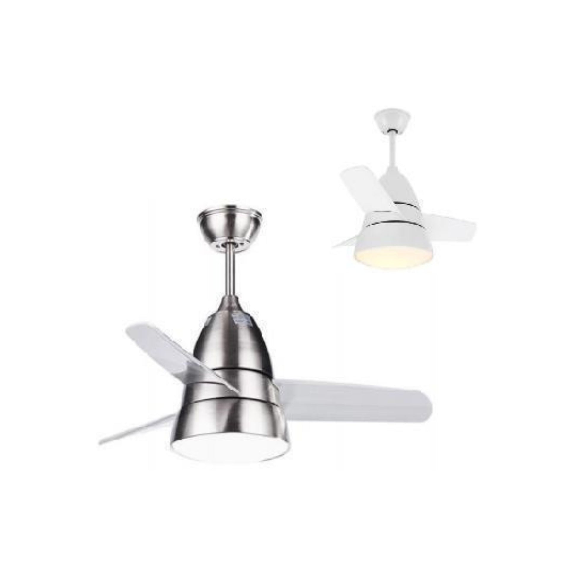 The Model 336 is a 660*430 mm ceiling fan made with durable ABS material. It features a 24W light source and offers adjustable color temperatures of 3000K and 6000K. Available in silver and white finishes, this fan blends functionality with modern style.