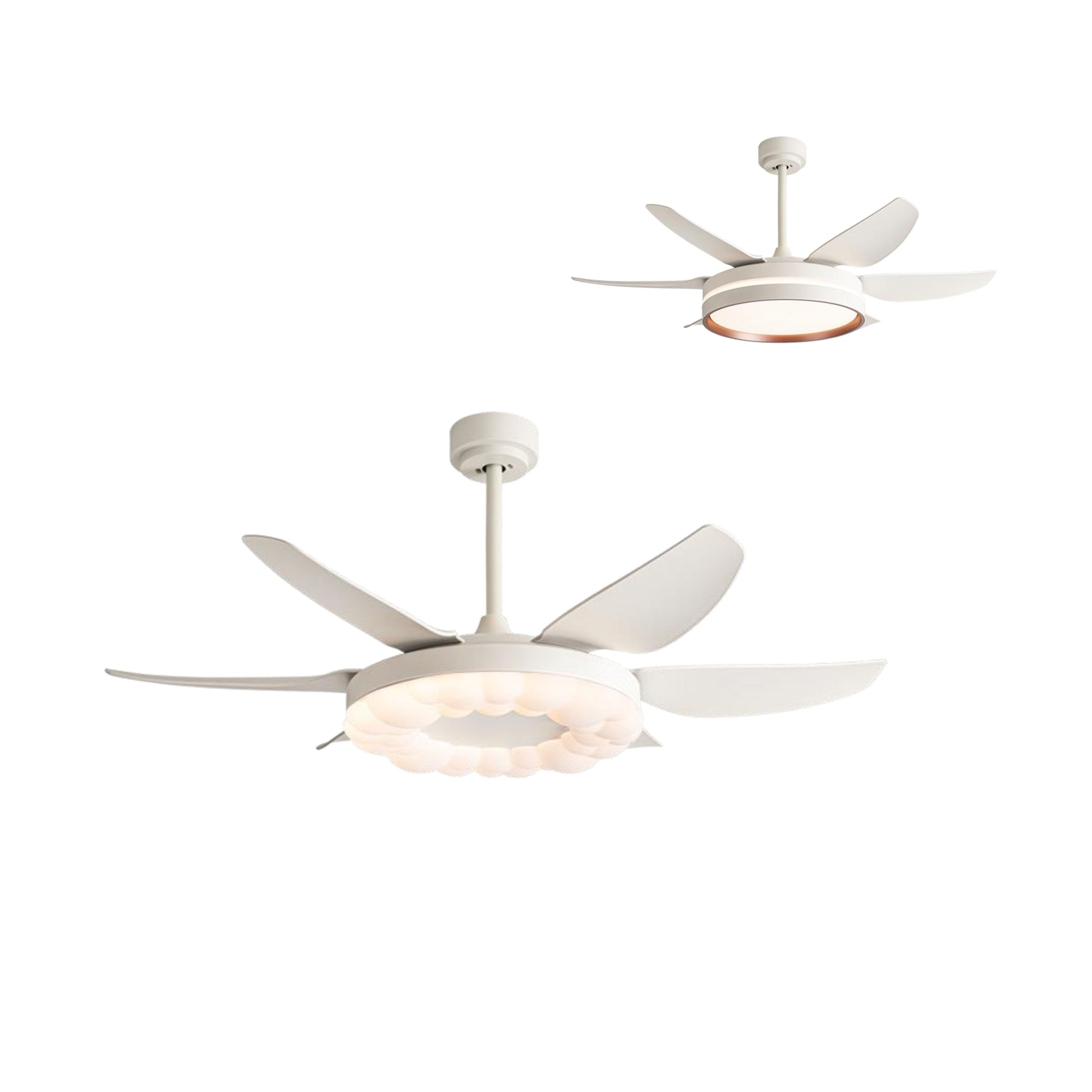 The Model 682 is a 52-inch ceiling fan designed for indoor use. It features dual integrated 48W LED light sources, providing efficient illumination. The fixture offers dual color temperatures of 3000K (warm white) and 6000K (cool white), allowing users to adjust the lighting to their preference. The design is available in a white finish, complemented by durable ABS blades.