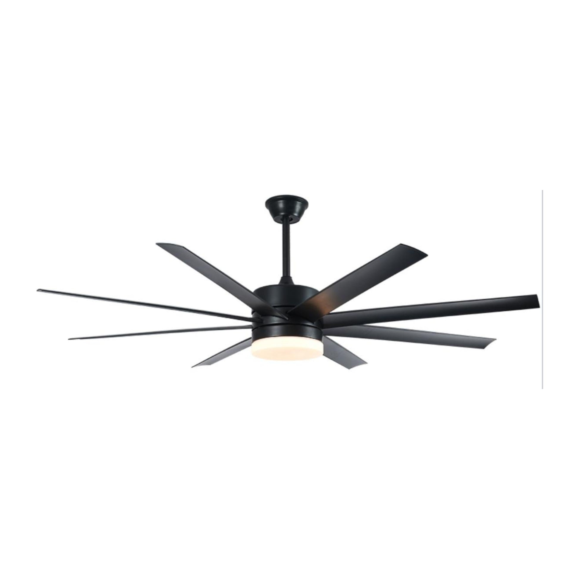 The Model 803 is a 64-inch ceiling fan equipped with a 24W integrated LED light, designed to provide both efficient airflow and versatile lighting options. Featuring a sleek black finish and durable ABS blades, this fan offers modern style combined with reliable performance. The dual-color temperature lighting (3000K and 6000K) allows for customizable ambiance to suit various room settings.