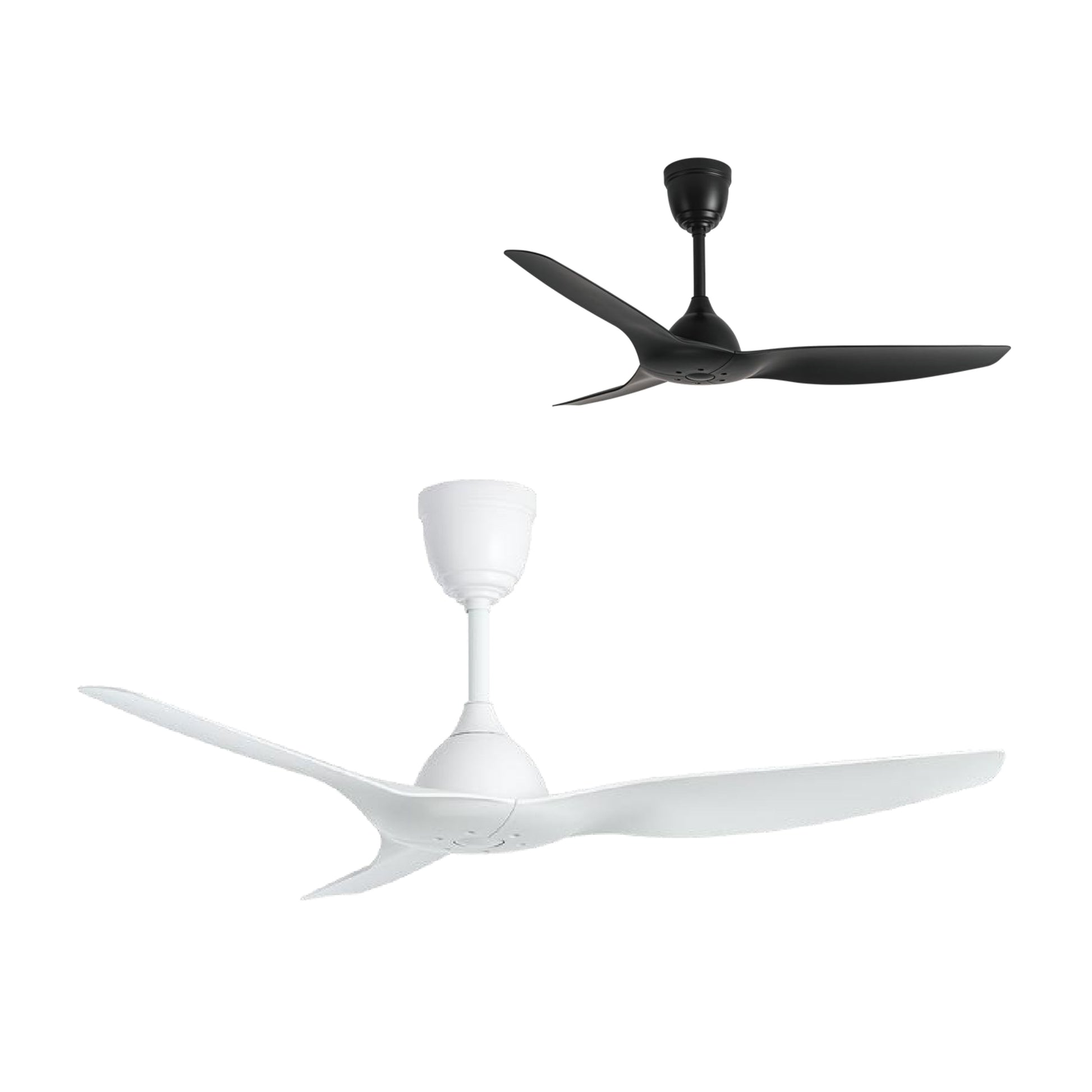 The Model 914 is a 52-inch ceiling fan suitable for indoor spaces. It is available in white and black finishes and is made from durable ABS material. This model does not include an integrated light source.