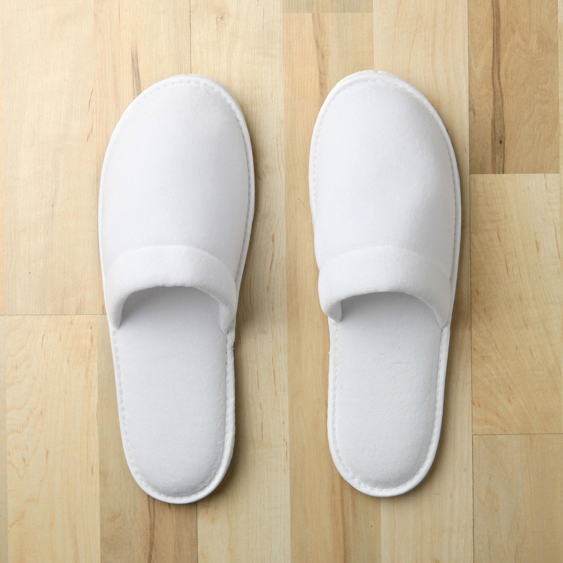 White Closed-Toe Slippers – Soft Velour, One Size Fits Most