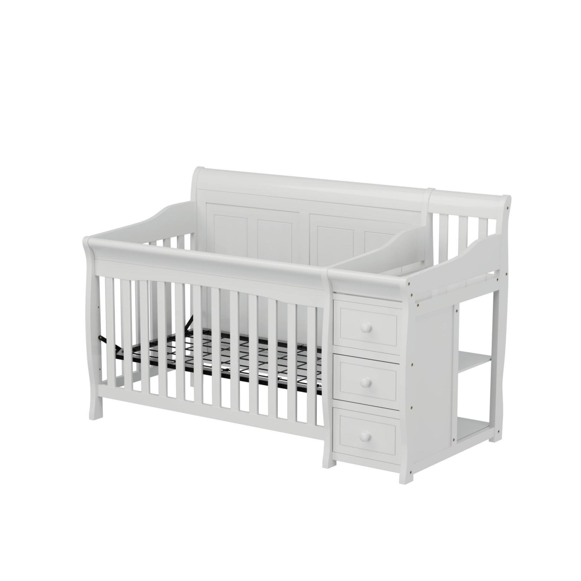 Features: Converts to day bed and toddler bed, 3 or 4-level adjustable mattress support, built-in cabinet