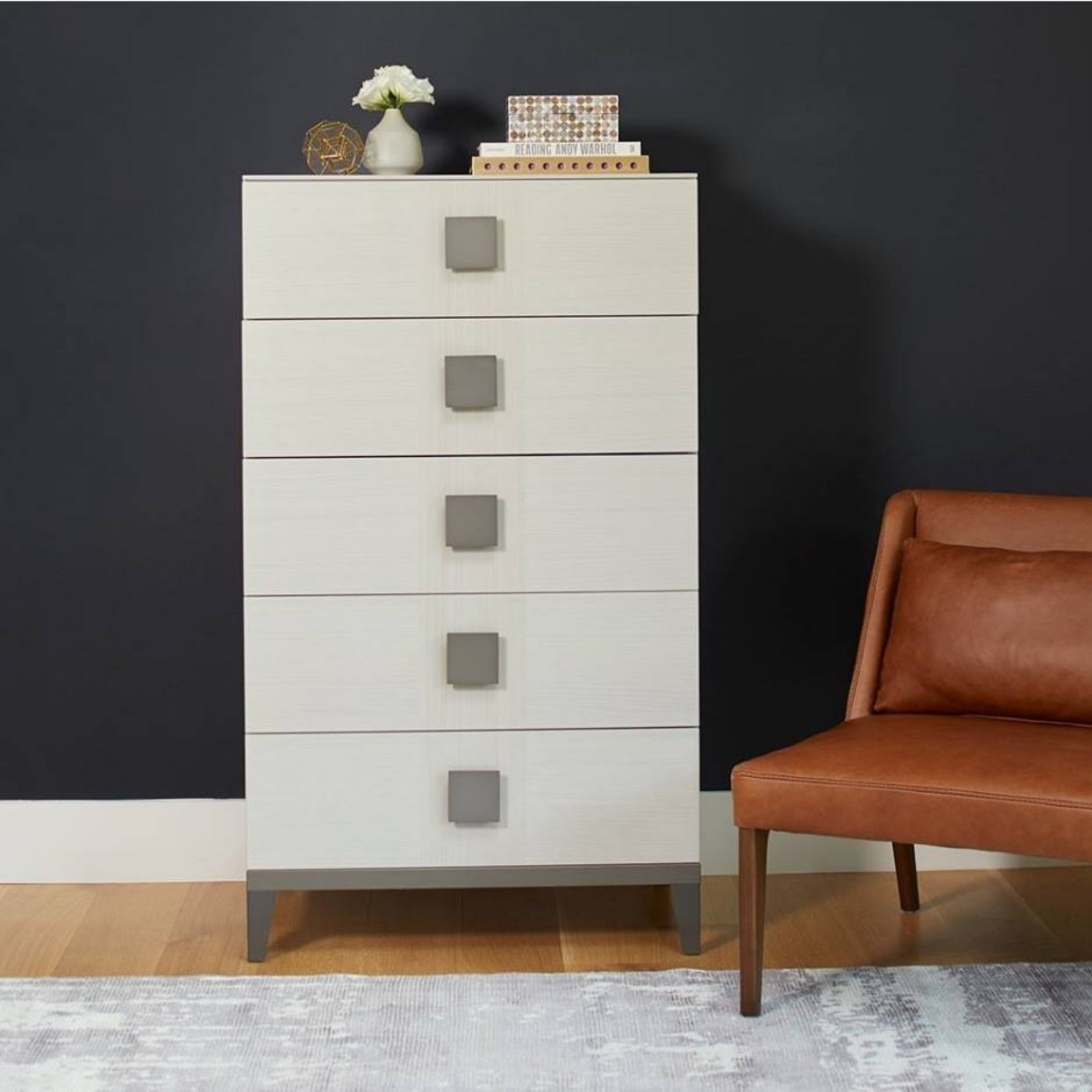 Features: Multiple storage drawers, vertical profile, compact and stylish design