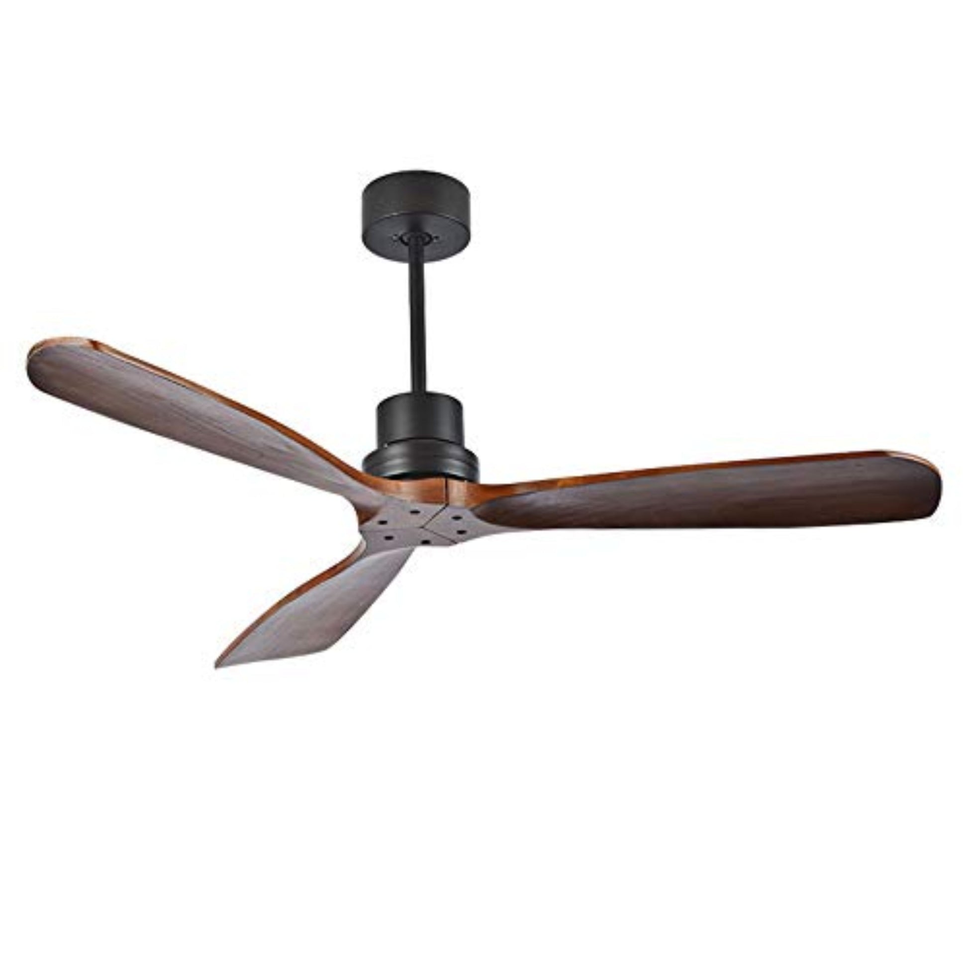The KBS-5247-2 ceiling fan delivers timeless elegance and reliable performance with its solid wood construction and streamlined matte black finish. Designed with three walnut-finished solid wood blades, this 52-inch fan operates quietly and efficiently using a DC motor. It does not include a light source, making it perfect for spaces where a minimalist ceiling fan is desired. Controlled by a six-speed remote, it offers both forward and reverse functionality for seasonal comfort. Built for those who value natural materials and clean aesthetics, this fan adds a refined touch to any room.