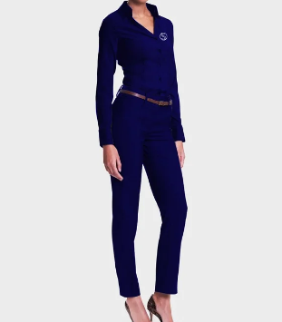 Elevate your professional wardrobe with this Ladies' Long-Sleeve Blouse & Pants set in classic navy blue. Designed for a sleek and polished look, the tailored blouse offers a flattering fit with a button-up front, structured collar, and cuffed sleeves. Paired with matching straight-leg pants, this set provides both style and comfort, making it ideal for front desk staff, corporate professionals, and hospitality teams. Crafted from high-quality, breathable fabric, it ensures ease of movement for all-day wear. Perfect for creating a refined and confident work ensemble.