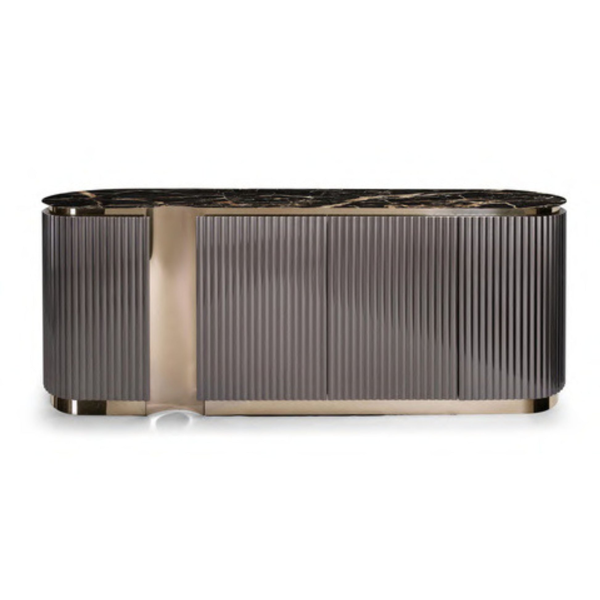 Luxury Wooden Sideboard with Marble Top & Stainless Steel Base – 4-Door Buffet Cabinet