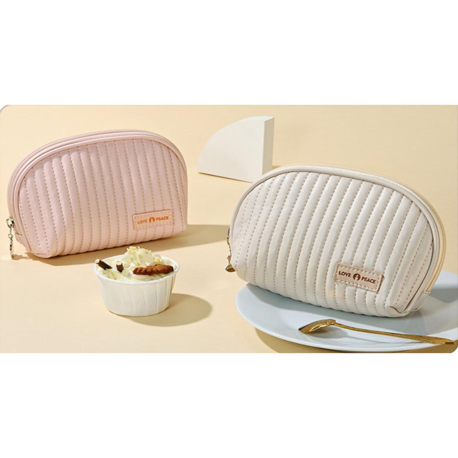 Compact and stylish, this half-round cake-style makeup bag is crafted from PU leather with a soft, creamy texture. Its charming silhouette and lightweight design make it perfect for storing beauty essentials on the go, while offering an elegant touch to your cosmetic collection.
