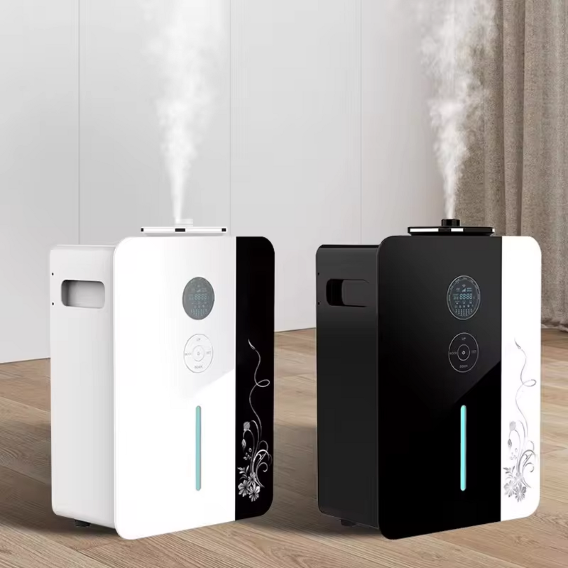 The MLK-5000N electronic diffuser is engineered for powerful scent diffusion in expansive areas, covering up to 8000 cubic meters. Crafted from high-quality metal in sleek white or black, this unit features a generous 1200ml capacity and operates with 28W of power. With a clear LED screen and app-controlled interface, this diffuser offers unmatched convenience and efficiency. It supports two-fluid atomization technology for ultra-fine misting and can be installed on a desktop, wall, or connected to HVAC systems for seamless integration.