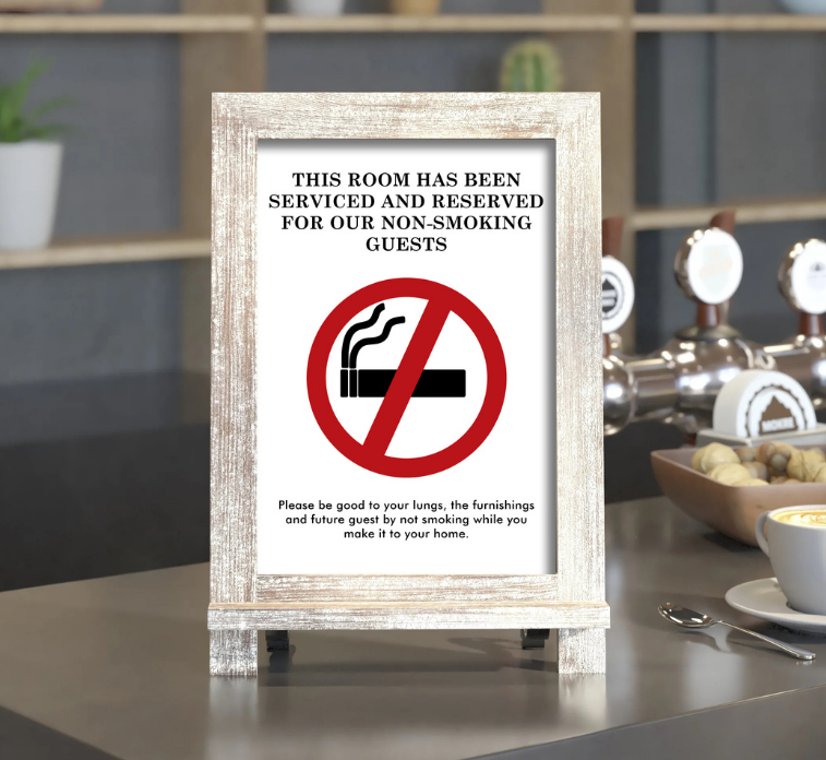 Enhance your space with this eco-conscious, bilingual No Smoking Sign that combines style, functionality, and environmental responsibility.