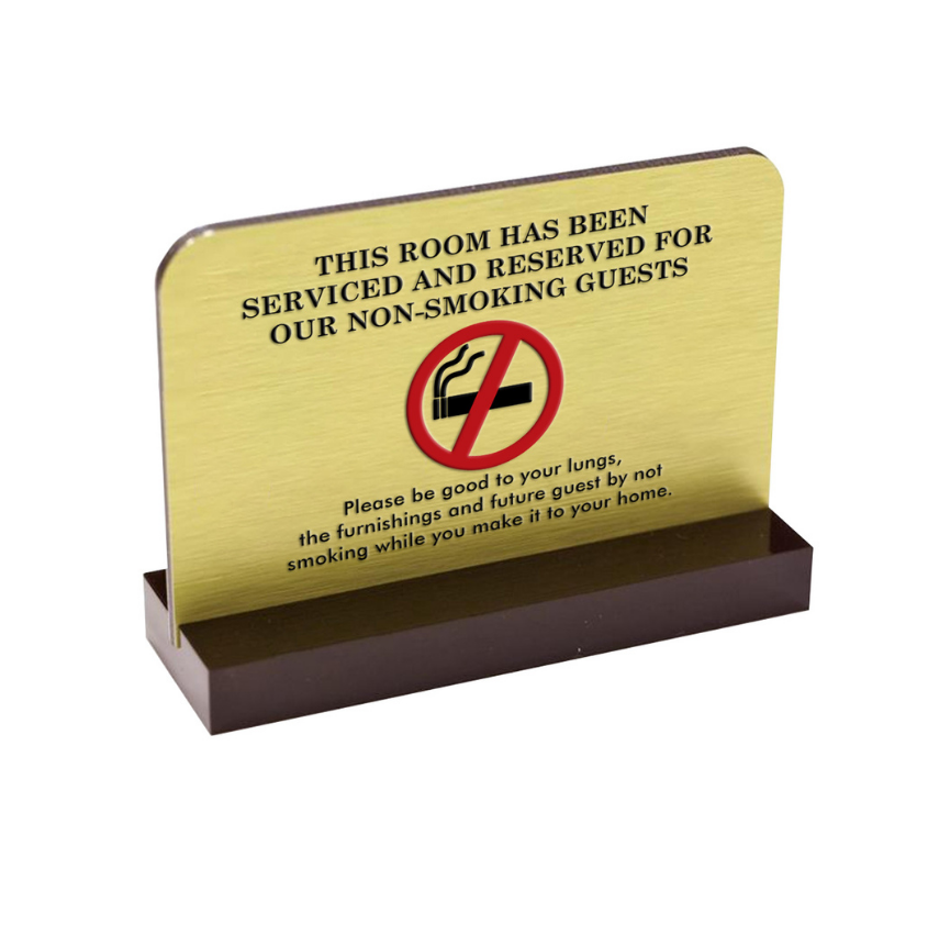 Enhance your space with this premium No Smoking Sign, crafted from durable metal with a sturdy wooden base for a sophisticated and professional look. Featuring a debossed print, this sign delivers a clear, long-lasting message suitable for hotels, offices, restaurants, and hospitality venues. Available in 3x4" and 4x6" sizes, it’s the perfect blend of functionality and modern design.