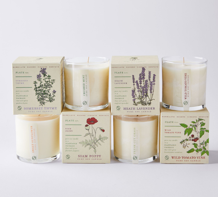 100% Pure Soy Wax packaged in a plantable, biodegradable, seed-infused box.