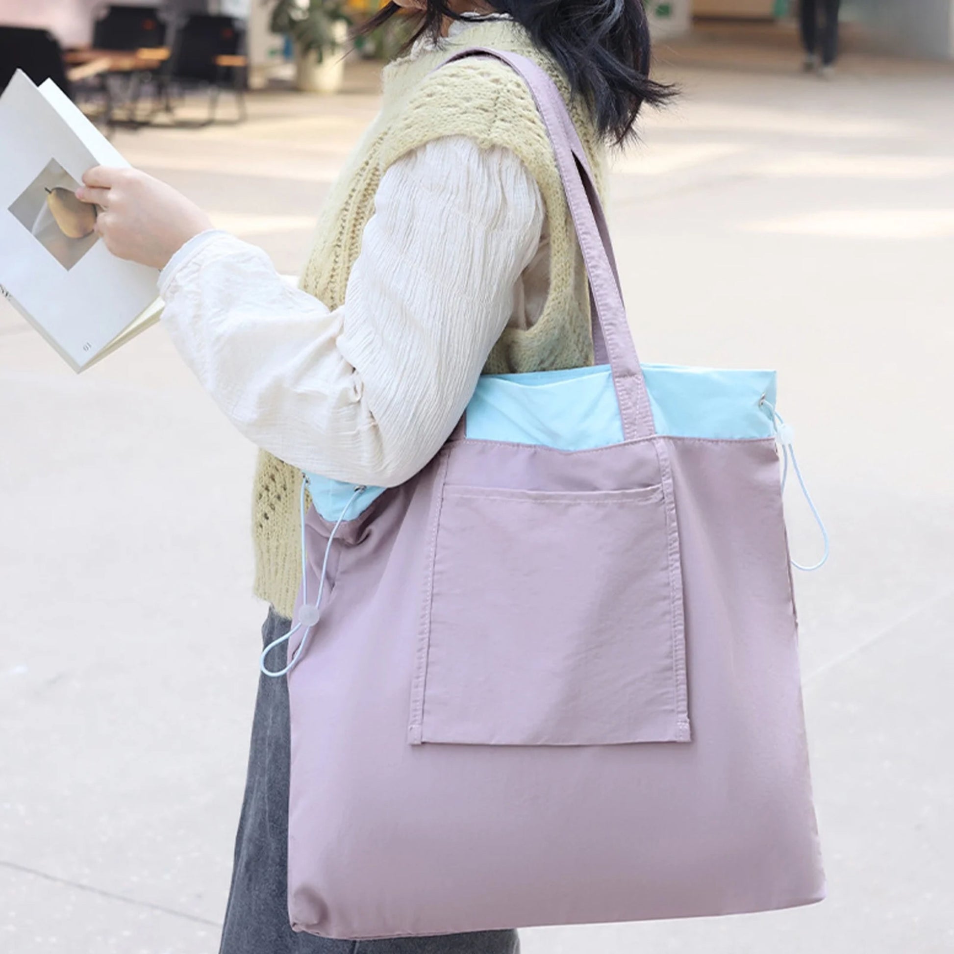 This foldable drawstring shopping bag offers convenience and eco-friendly style in one. Crafted from lightweight nylon, it easily folds into a compact size for storage and expands to a roomy tote when needed. The drawstring closure ensures your items stay secure, making it perfect for groceries, daily errands, or travel.