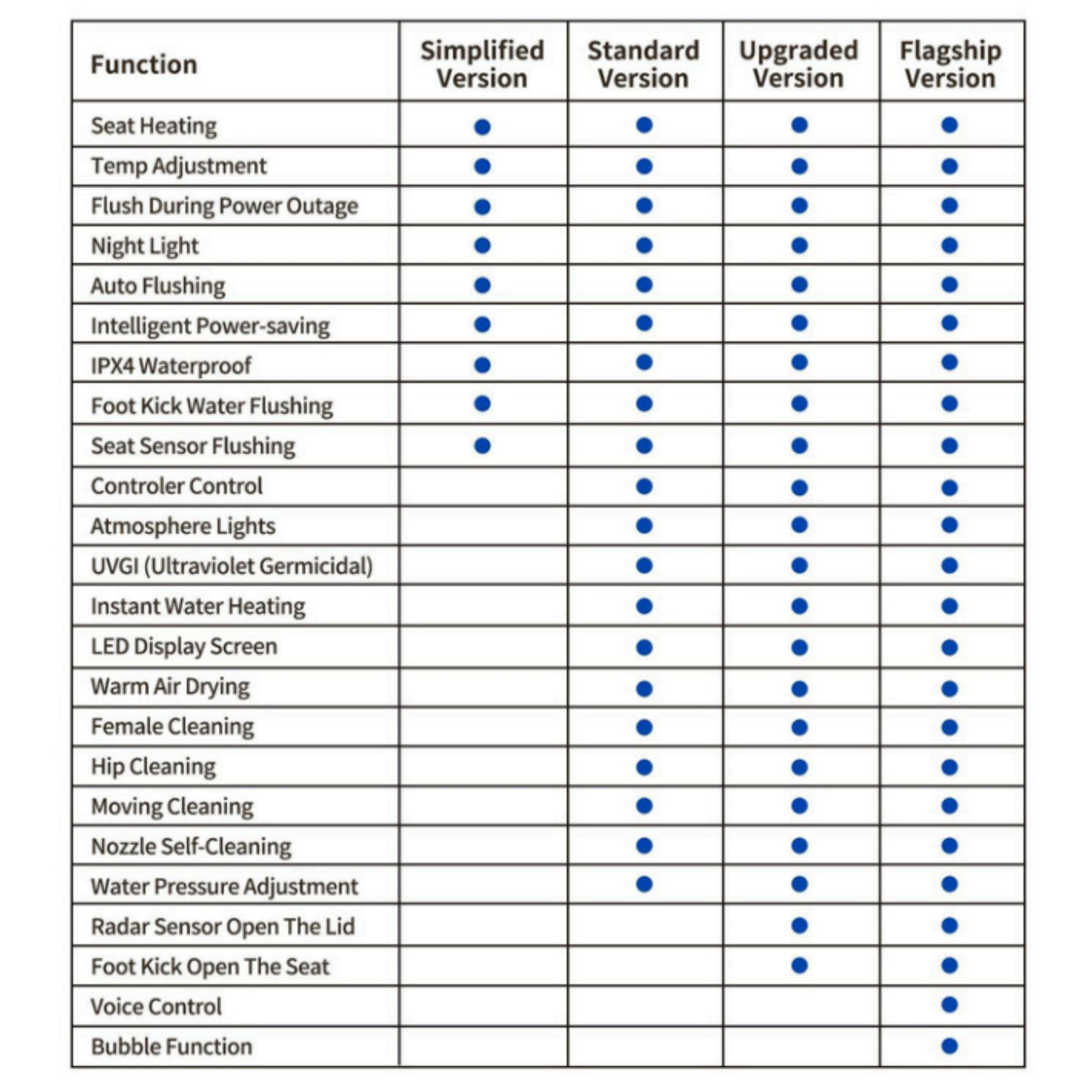 The T9016 smart toilet features a modern and sleek design that enhances any bathroom with a subtle color rim light. Built with durable ceramic and PP materials, it offers instant heating and a customizable voltage and plug-in setup. With dimensions of 680 x 390 x 450 mm and a 300/400 mm pit spacing, it combines technology and practicality to deliver a refined, high-performance experience.