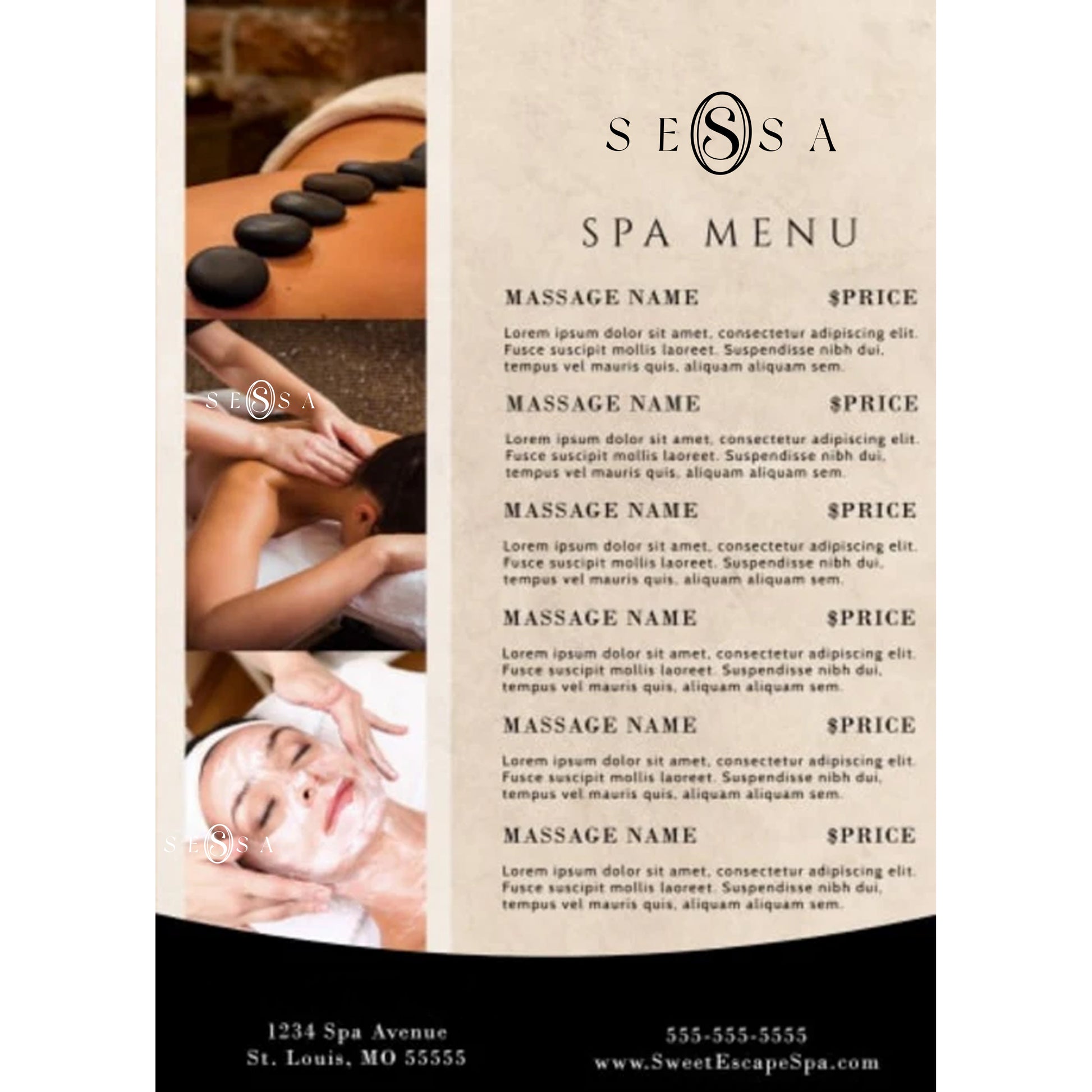 Luxurious Spa Menu Cards for Hotels & Resorts