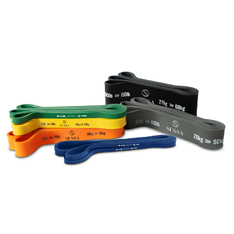 Each band offers varying levels of resistance with stretchability decreasing from 200% to 160%.