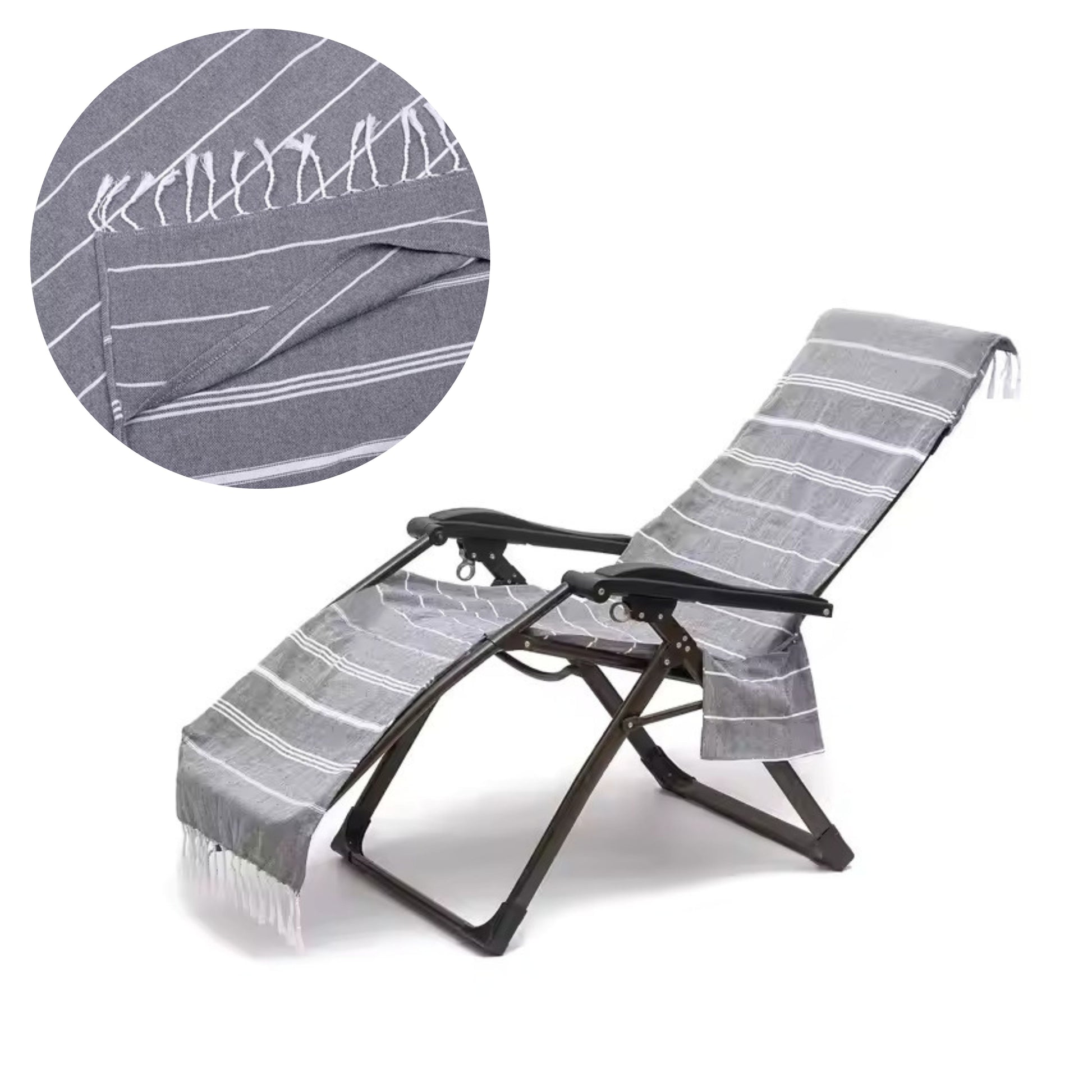 Turkish Cotton Beach Chair Cover Towel – 80x200cm with Pockets