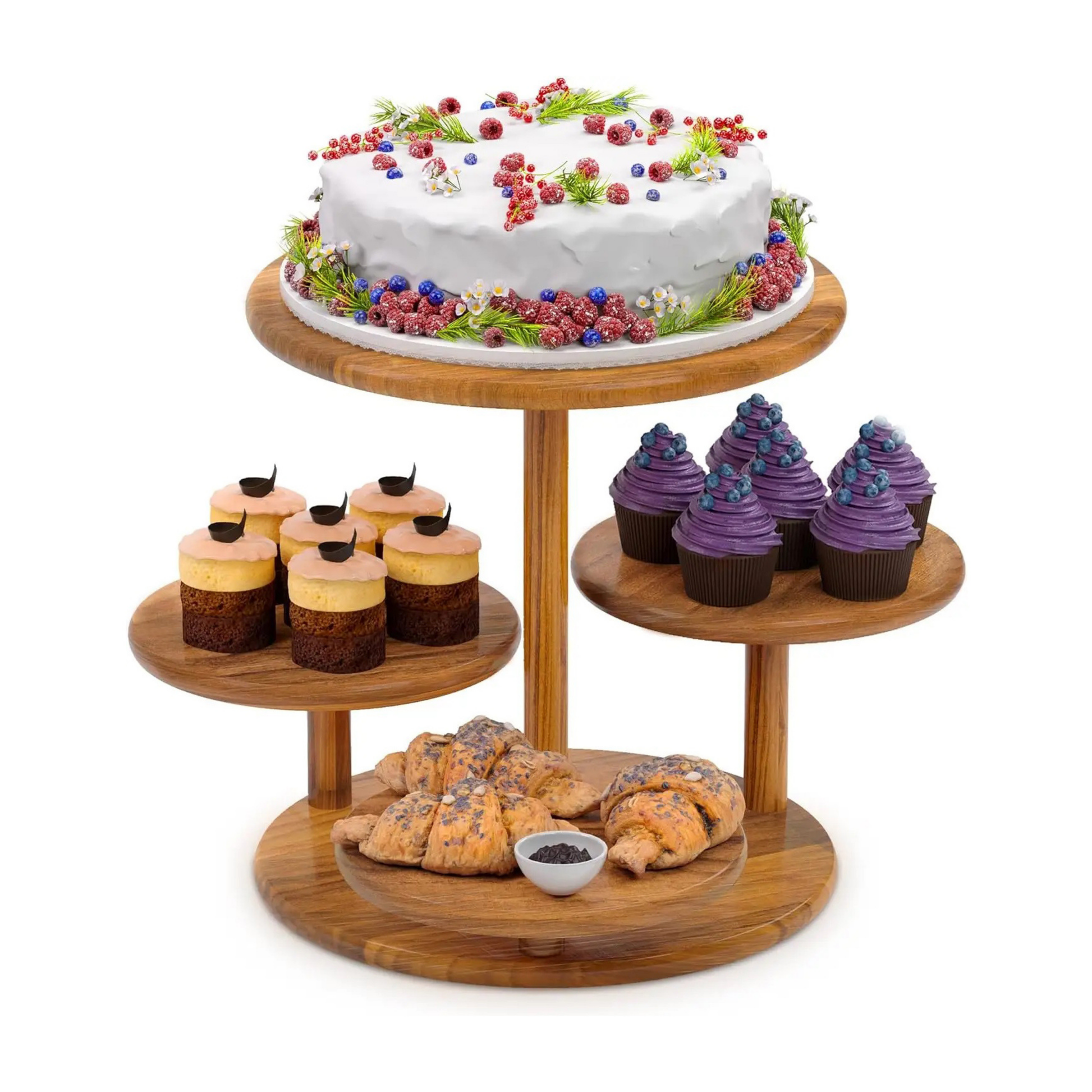 Impress your guests with this beautifully crafted 4-tier round dessert tower display, made entirely from high-quality wood. Featuring a rich brown finish, this tiered stand brings a warm, rustic charm to any dessert table. Ideal for showcasing cupcakes, pastries, fruits, or savory bites, it offers ample space for presentation while maintaining a compact footprint. Its round tiered design provides a balanced and elegant look, perfect for weddings, buffets, catering events, or afternoon tea.